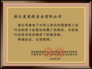 • 浙江星星便潔寶有限公司從1998年籌建以來,歷經近20年的發展,現已成為國內技術水平領先、產能規模居前、以自主品牌銷售為主的智能馬桶企業。參與起草了國家、行業、地方的三大產品標準(國家標準GB/T34549-2017《衛生潔具 智能坐便器》、行業標準CBMF15-2016《智能坐便器》、地方標準《浙江制造標準-智能馬桶》)。并擔任中國陶瓷工業協會智能衛浴分會副會長單位、中國建筑衛生陶瓷協會智能家居分會副理事長單位、中國家用電器協會智能衛浴電器專業委員會副主任委員單位,“全國感應潔具十強企業”、“高新技術企業”、“浙江省知名商號”、“浙江名牌產品”、智能馬桶“浙江制造”首張認證、“全國售后服務行業十佳單位”等多項榮譽稱號。產品成功入駐中央黨校、G20西湖國賓館、杭州西湖五星公廁等。國家領導人習近平在2002年時任浙江省委書記時曾親臨考察指導;張德江(原浙江省委書記、現全國人大委員長)、支樹平(國家質檢總局局長)、李強(原浙江省省長、現上海市委書記)、車俊(浙江省委書記)、馮飛(浙江常務副省長)、高興夫(浙江副省長)等領導也曾先后親臨考察指導。